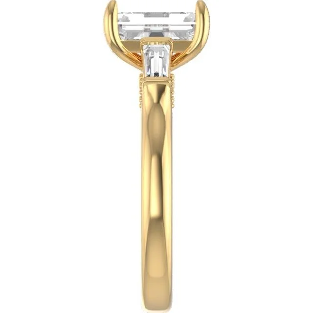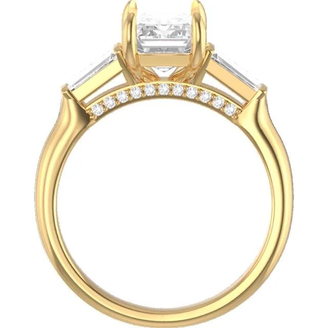 14K Yellow Gold, Emerald Cut Center, Double Claw Prongs, Tapered Baguette Horizontal Sides